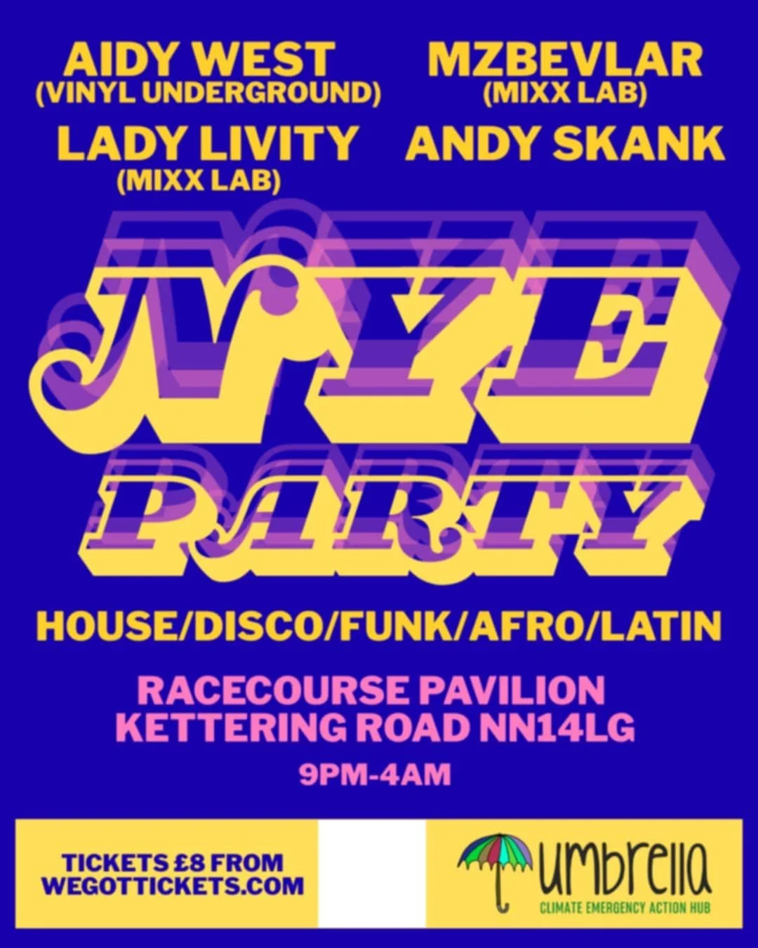 There will be an eclectic mix of sounds House / Disco / Funk / Afrobeat / Latin with DJ's Andy Skank, Aidy West and joining us for this year MIXX LAB DJ's Lady Livity and Mzbevlar helping us bring in the New Year.